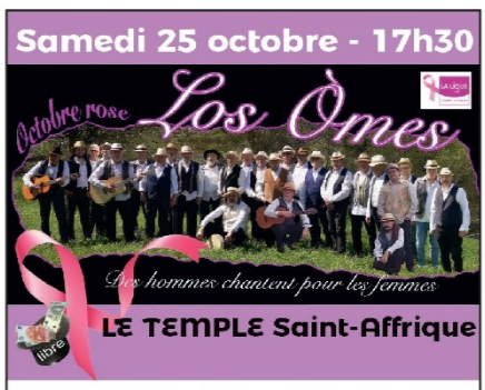 St-Affrique: Le Samedi 25 Octobre 2025, au Temple, à 17h30 :« Octobre Rose ». Concert « Los Omes ».