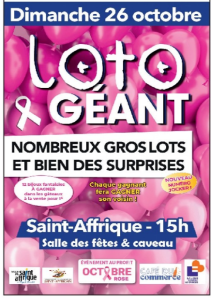 St-Affrique: Le Dimanche 26 Octobre 2025, Salle des Fêtes, à 15h00 :« Octobre Rose ».