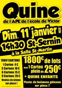 Vabres l’Abbaye : Le Samedi 17 Janvier 2026, à la Salle des Fêtes, à 21h00 : Quine de l’école Sainte Famille.