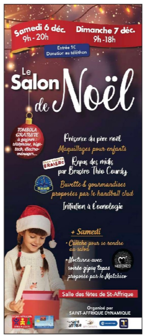 St-Affrique : Le Samedi 06 Décembre 2025, à la Salle des Fêtes, de 9h00 à 20h00 : Salon de Noël.