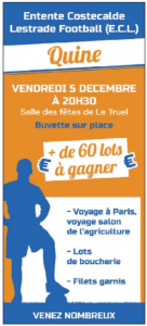 Les Costes-Gozon : Le Dimanche 07 Décembre 2025, à la Salle des Fêtes, à 14h00 : Super Quine .(Téléthon).