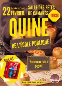 St-Jean d’Alcapiès : Le Dimanche 22 Février 2026, à la Salle des Fêtes, à 14h30 : Quine des écoles de Tournemire et St-Jean d’Alcapiès.