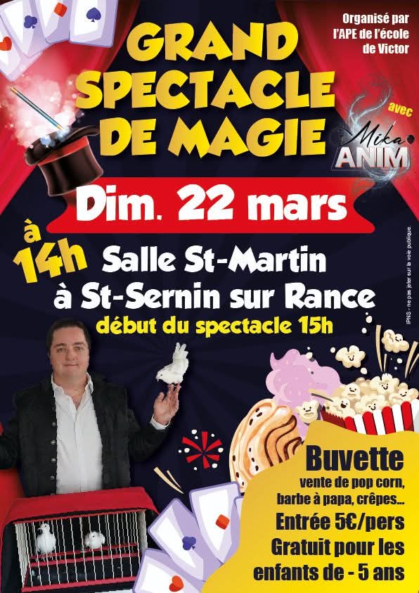 Saint-Sernin sur Rance : Le Dimanche 22 Mars 2026, à la Salle des Fêtes, à 14h00 : Grand Spectacle de Magie.