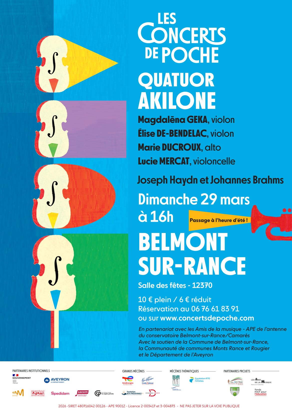Belmont : Le Dimanche 29 Mars 2026,à la Salle des Fêtes,à 16h00 : Les Concerts de Poche.