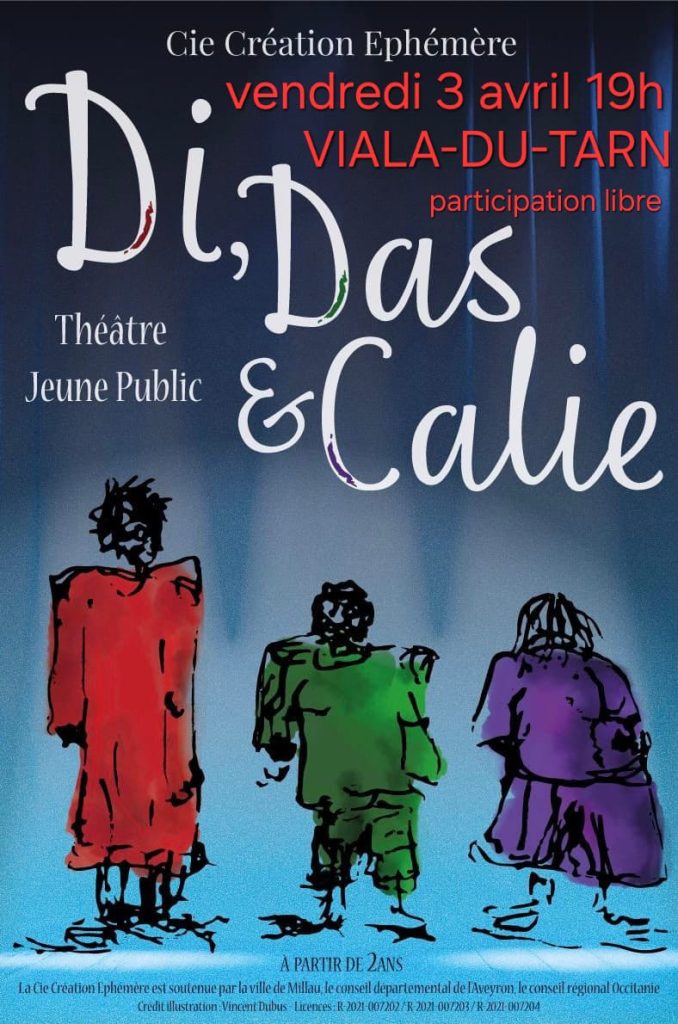 Le-Viala-du-Tarn : Le Vendredi 03 Avril 2026, à la Salle des Fêtes, à 19h00 : Théâtre « Di,das & Calie » par la Compagnie Ephémère.