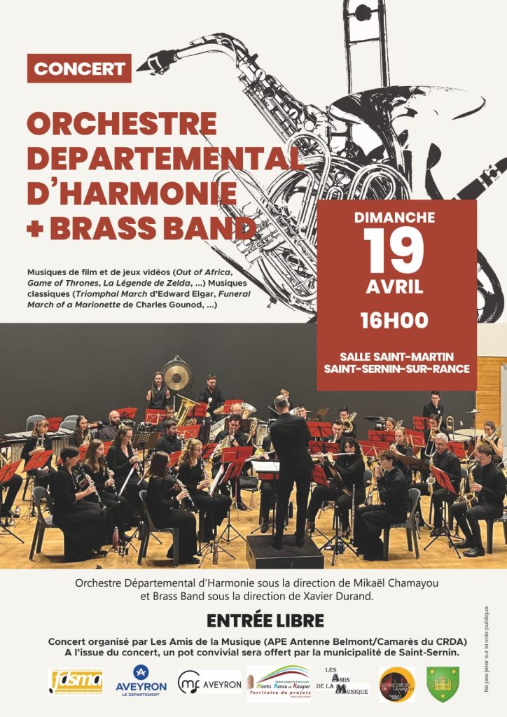 St sernin sur Rance : Le Dimanche 19 Avril 2026,Salle St Martin, à 16h00 : Concert de l’Orchestre Départemental d’Harmonie + Brass Band.