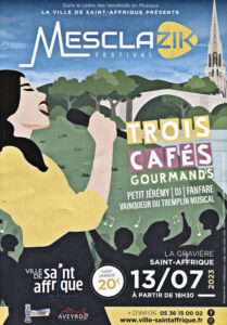 Évènements 2023 2023 Concert de l’Harmonie du Sud-Aveyron à Saint-Sernin sur Rance….. 2023 ← Cliquez ici Le Jugement des Cornards à St-Rome de Tarn. 2023 ← Cliquez ici Concert à la Collégiale de St-Sernin sur Rance de la Chorale « Cantadis » de Lacaune. 2023 ← Cliquez ici Fête de la Musique 2023 à St-Affrique 2023 ← Cliquez ici Concert de la Chorale « La Passacaille » enregistré à l’église de Monteils le Dimanche 02 Juillet 2023. 2023 ← Cliquez ici Fête de Saint-Affrique : Le Corso Fleuri. 2023 ← Cliquez ici Festival « Mesclazik » à la « Gravière » à St-Affrique enregistré le Jeudi 13 Juillet 2023. 2023 ← Cliquez ici Gala de danse « POURQUOI JE DANSE »,3 ème édition.Evènement créé et organisé par Inès et Eva ANDRE,enregistré le 03 Août 2023 au Jardin Public devant la salle des fêtes. 2023 ← Cliquez ici Dans le cadre des « Vendredis en Musique » à Saint-Affrique: Concerts d’été. 2023 ← Cliquez ici Concert d’Helena & Phil à Notre Dame du Désert 2023 ← Cliquez ici Tournage du film « en cavale » à Ste Eulalie de Cernon avec Michèle Bernier et Stéphane Plazza. 2023 ← Cliquez ici Retour évènements